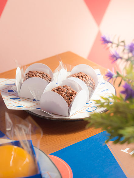 Brigadeiro aerado, chocolate suflair e ganache de chocolate. Disponível em versões: